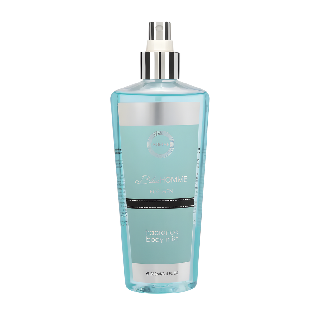 Blue Homme Mist: A sophisticated aromatic fragrance with fresh citrus, herbal florals, and a warm woody base. Ideal for the modern man who values elegance and confidence.